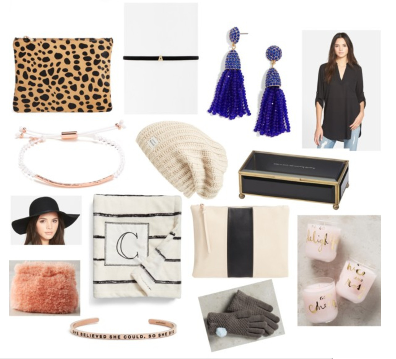 Today's post is all about girly gifts for $50 and under! How sweet are these light pink and gold candles?! They're perfect for gifting to your mother in law or girlfriend who loves to host parties. Have a fashionista on a budget friend? She'll love the leopard clutch that is a la clare vivier but without the high price tag. I have the power stone bracelet and it's truly so perfect for stacking since it's so light and dainty and would make a great gift for a sister or friend. It's personalized too since each stone means something different. And don't you want to wrap up and snuggle with your love in this cozy monogram blanket?! Consider gifting it to newlyweds who are celebrating their first Christmas together! I hope you find this and my $100 and under gift guide helpful!